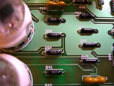 The resistors that amplify the audio signals are the most precise available on the market (0.1%). They are used in electronic equipment in aeronautical and aerospace satellites, and feature zero capacitance and inductance, undetectable by the most sensitive analytical equipment in the world. |